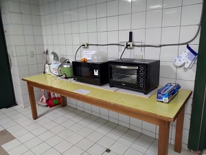 お部屋の中での調理はできませんが、代わりに共用キッチンが設置されています。ここには大型の冷蔵庫(共用)もあります。近くにスーパーがあるので、食材を買ってきて自炊するにも便利です。他の学生と同じ冷蔵庫を使いたくないという方には、冷蔵庫のレンタルも可能です。(500台湾ドル/月)