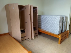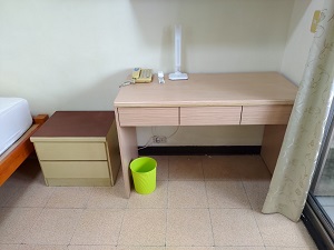 全部屋に勉強机、電灯・クローゼット・固定電話があります。その他、家具一式と寝具(マット・シーツ・布団・枕)も揃っているので、特に自分で家具を買い足す必要はありません。WiFiも家賃に含まれいるのでお得です。なお、1回50元で、布団やシーツの洗濯や交換を頼めます!
