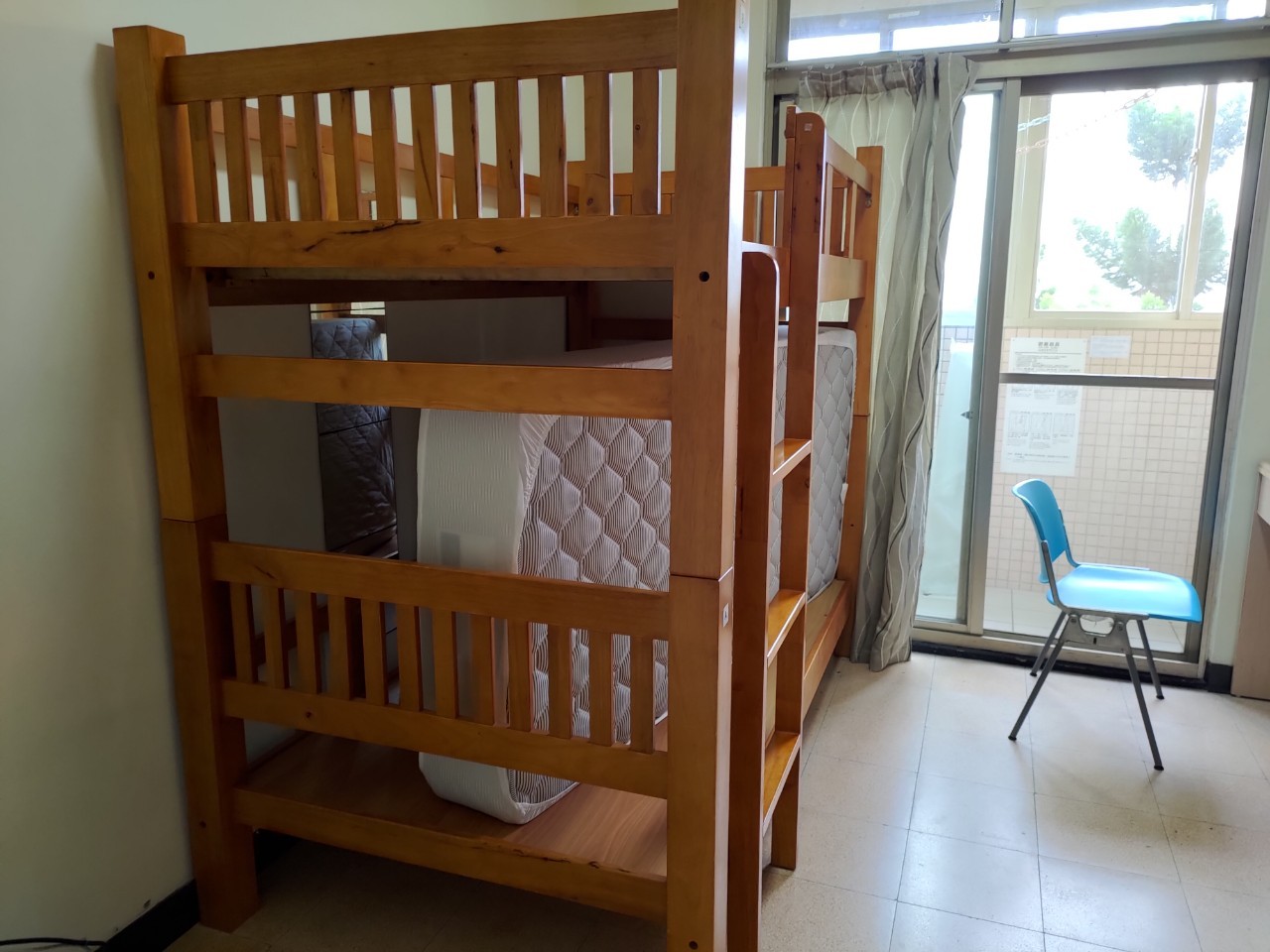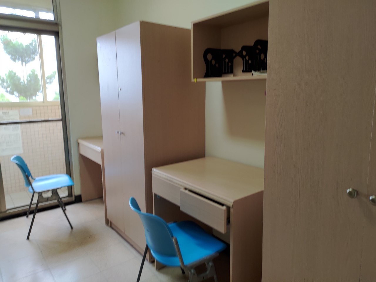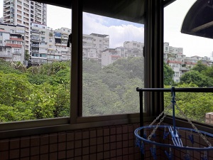 学生1人部屋と学生2人部屋の設備はほとんど同じです。各部屋にベランダがあり、台北市の景色を一望できます。ベランダに物干し竿はないのですが、自分でロープを用意すれば洗濯物も干せますね。別途、洗濯物は共有スペースでも干せるのでご安心ください。
