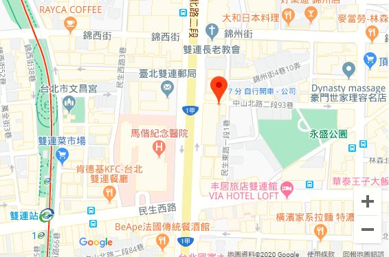 | 住所Adress | 台北市中山區中山北路二段93巷2F(12階建て) |
