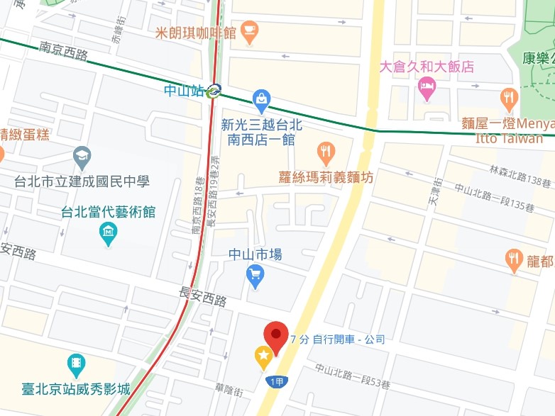 | 住所Adress | 台北市中山區中山北路一段7F(13階建て) |