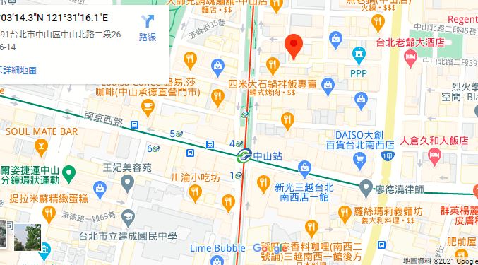 | 最寄り駅Nearest station | 淡水信義線・松山新店線「中山駅」徒歩3分 |