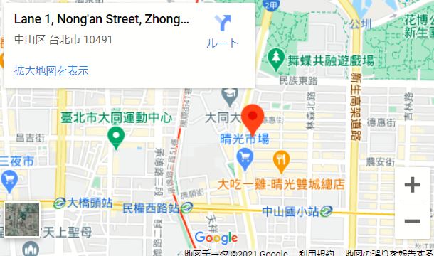 | 住所Adress | 台北市中山區農安街11F(14階建て) |
