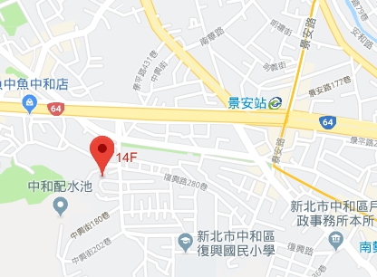 | 住所Adress | 新北市中和區中興街142號14F(15階建て) |