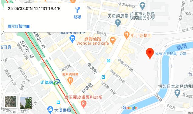 | 住所Adress | 台北市北投區明德路118巷21號2F(5階建て) |