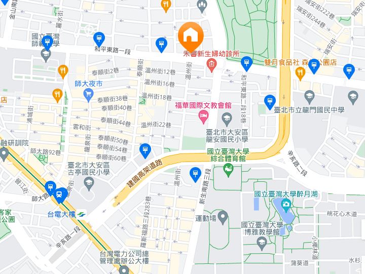 | 住所Adress | 台北市大安區和平東路一段191號12F(14階建て) |