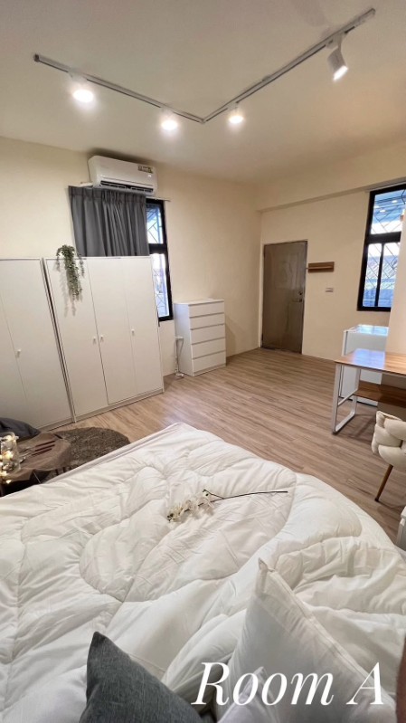 | コメントComments | ・三階建てのアパートの屋上部分に位置するシェアハウス ・こちらのお部屋はバス、トイレ付きのタイプ(ほかにバス、トイレ共用のお部屋もあり) ・室内は広々としており、ダブルベッドで快適 ・広いベランダはとても開放的で、テラスでお酒を飲んだりしてまったりすることもOK ・広いキッチンがあり(共用)では自炊派にもお勧め ・台湾大学と台湾科技大学まで徒歩7~8分の好立地で留学生にもお勧め |