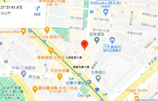 | 住所Adress | 台北市大安區師大路129號2F(7階建て) |