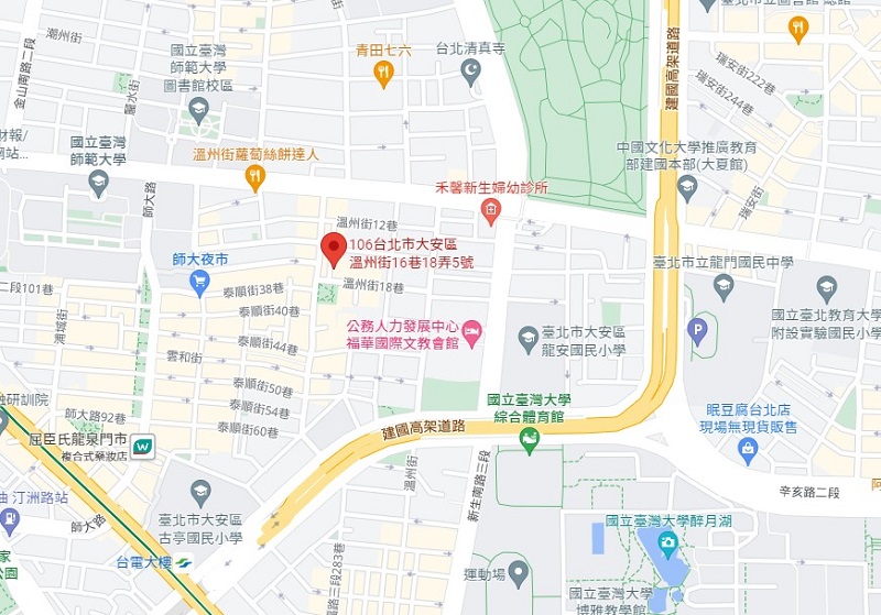 | 住所Adress | 台北市大安區溫州街溫州街16巷18弄5號5F(5階建て) |