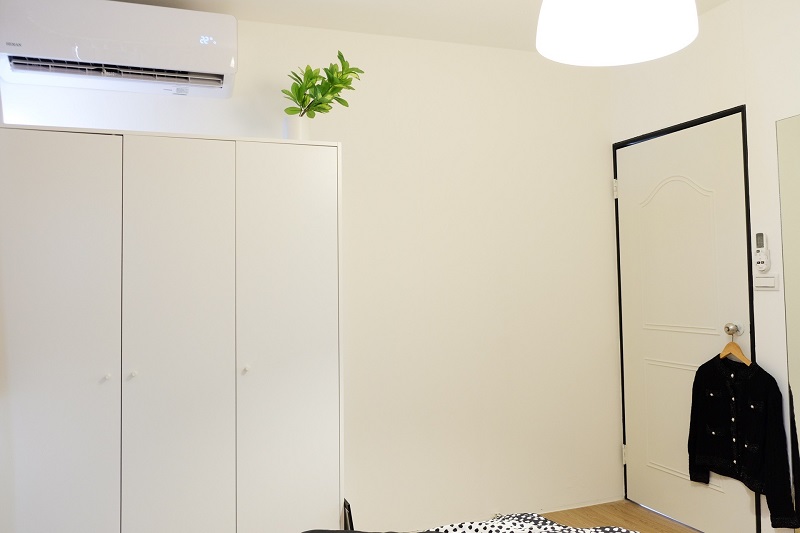 | 設備Facilities | ベッド・椅子・机・クローゼット・物入れ・エアコン、(以下共用設備)テレビ・ダイニングテーブル・チェアー・冷蔵庫・洗濯機・靴箱など |