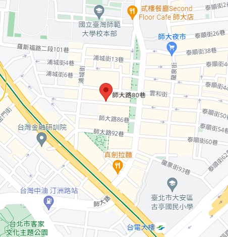 | 住所Adress | 台北市大安區師大路80巷3F(5階建て) |