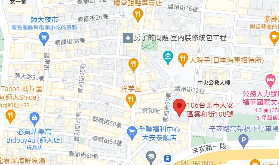 | 住所Adress | 台北市大安區雲和街108號4F-A室(5階建て) |