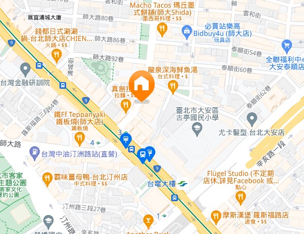 | 住所Adress | 台北市大安區師大路129號2F(7階建て) |