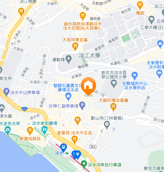 | 住所Adress | 新北市淡水區水源街一段122巷1F(1階建て) |