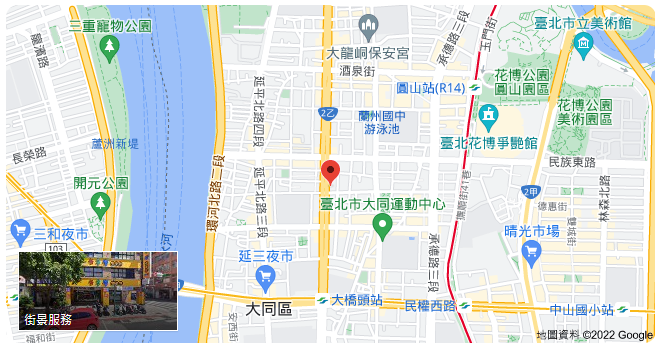 | 住所Adress | 台北市大同區重慶北路三段115-1號5F(5階建て) |