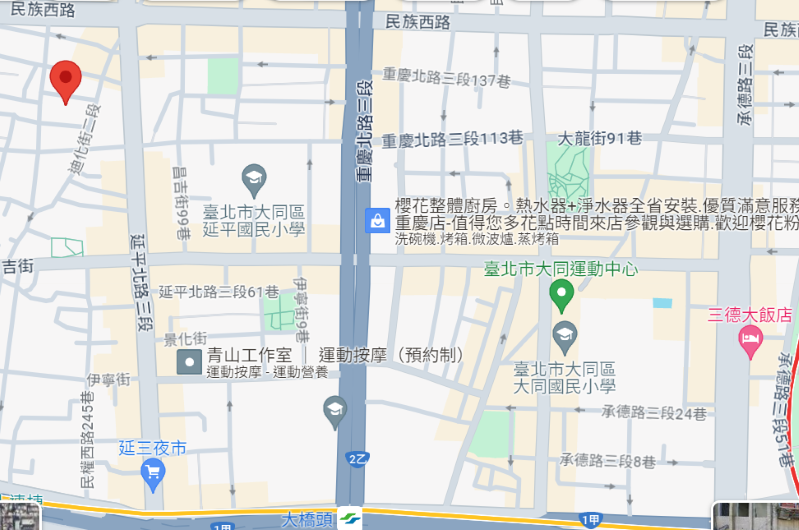 | 住所Adress | 台北市大同區迪化街二段190巷10號2F(3階建て) |