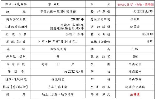 | 家賃Rent | 60,000台湾ドル/月 |