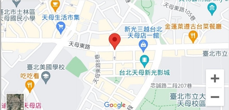 | 住所Adress | 台北市士林區天母東路9F(12階建て) |