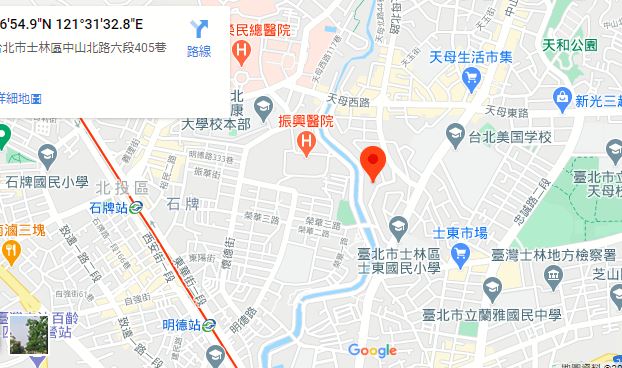 | 住所Adress | 台北市士林區中山北路六段405巷3F(7階建て) |