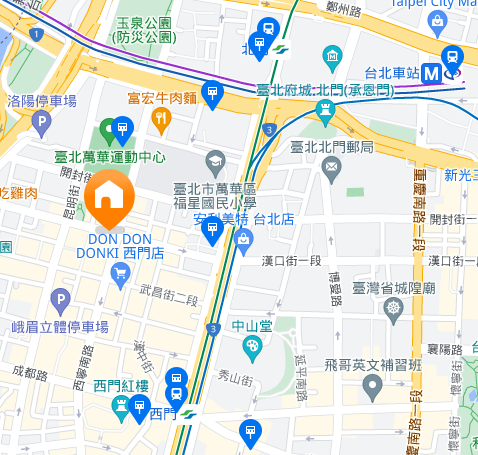 | 住所Adress | 台北市萬華區西寧南路6F(10階建て) |