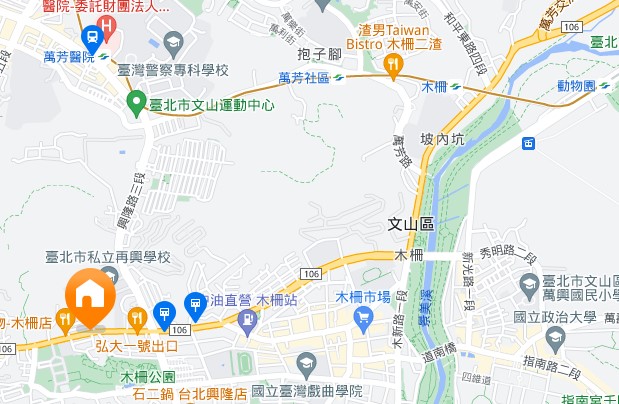 | 住所Adress | 台北市文山區木柵路一段2F(3階建て) |