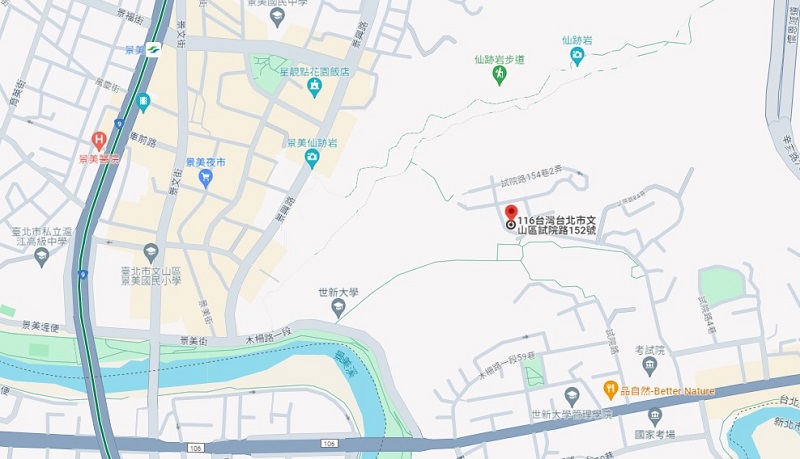 | 住所Adress | 台北市文山區試院路152號2F(5階建て) |