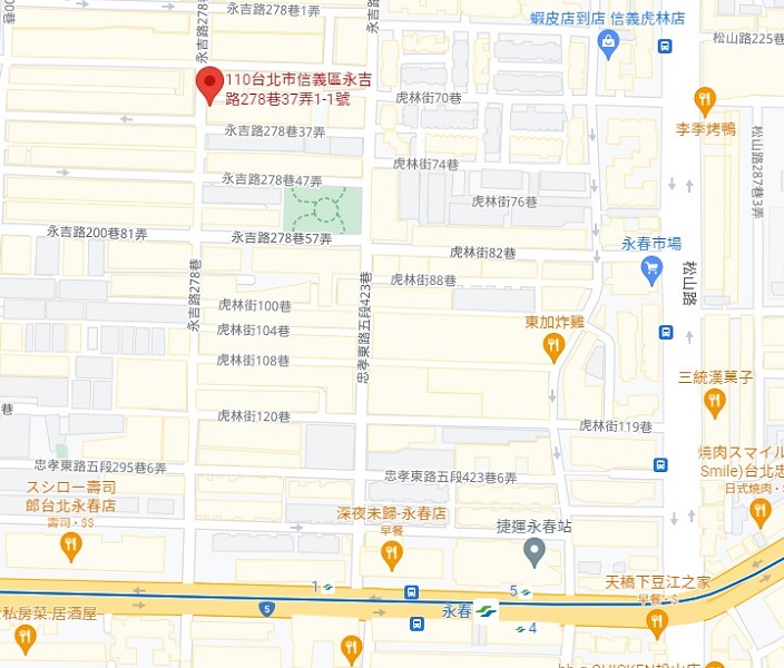 | 住所Adress | 台北市信義區永吉路278巷37弄1-1號 5F(5階建て) |
