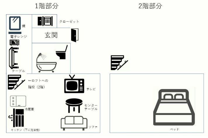 | 設備Facilities | ベッド・ベッドフレーム・ソファ・センターテーブル・机・椅子・テレビ・テレビ台・クローゼット・エアコン・冷蔵庫・食器乾燥機・洗濯機など |