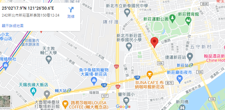 | 住所Adress | 新北市新莊區建中街90巷6F(6階建て) |