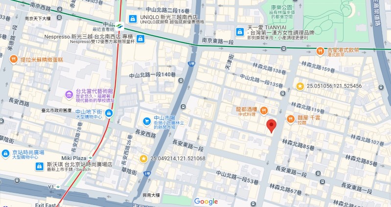 | 住所Adress | 台北市中山區林森北路96號9F-5 |