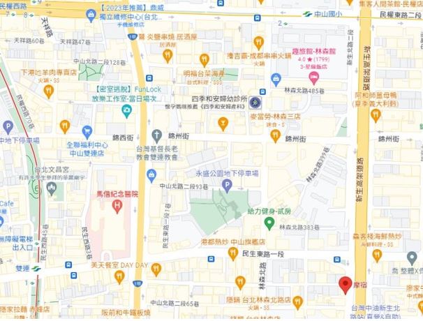 | 近くのスポットNear tourist spot | 中山ショッピングエリア・シンシン百貨店・林森北路日本人街・中山伝統市場など |