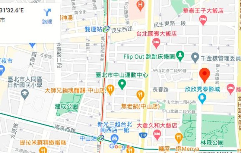 | 住所Adress | 台北市中山區林森北路308號13F(15階建て) |
