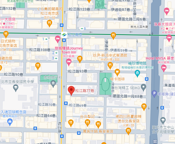 | 住所Adress | 台北市中山區松江路77巷2號5F(11階建て) |