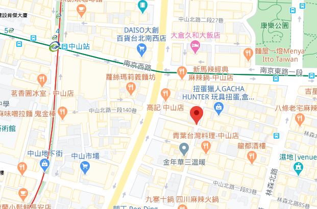 | 最寄り駅Nearest station | 淡水信義線「中山駅」より徒歩5分 |