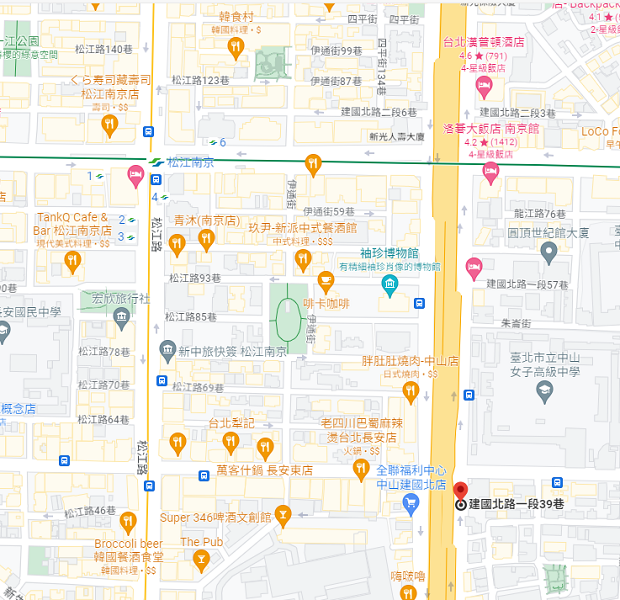 | 住所Adress | 台北市中山區建國北路1段10F(15階建て) |