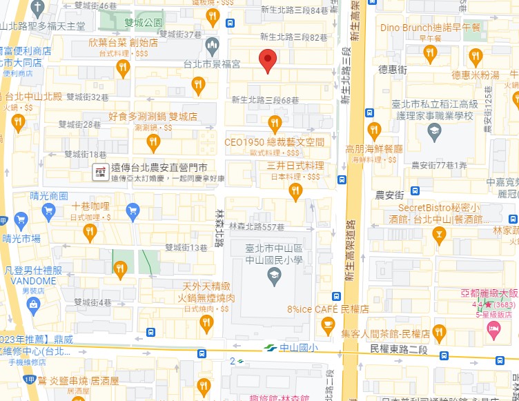 | 住所Adress | 台北市中山區德惠街34號4F(11階建て) |