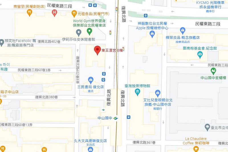 | 住所Adress | 台北市中山區復興北路400號15F之5 (18階建て) |
