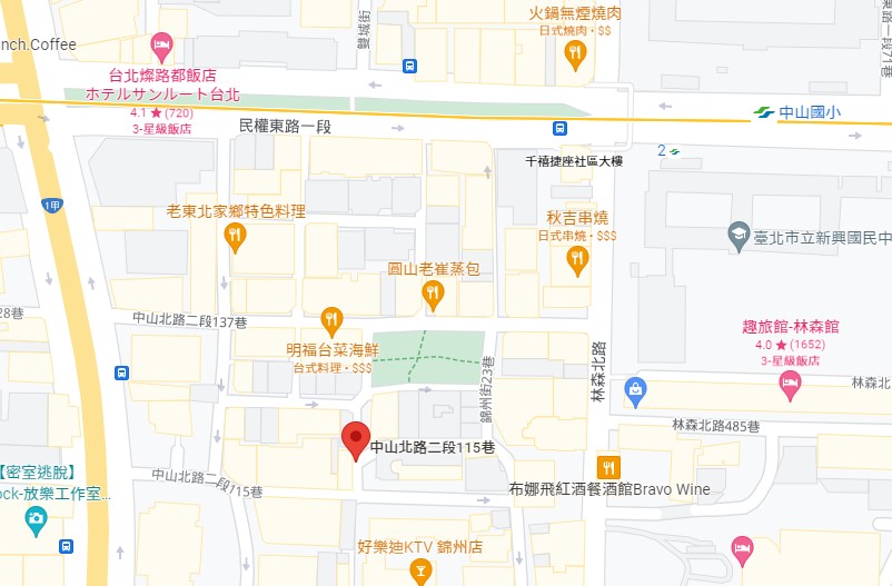 | 住所Adress | 台北市中山區中山北路2段7F(7階建て) |