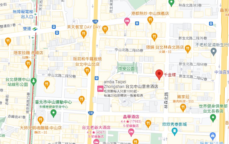| 住所Adress | 台北市中山區林森北路308號6F(15階建て) |