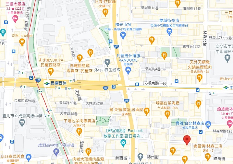 | 住所Adress | 台北市中山區中山北路二段115巷30號7F(7階建て) |