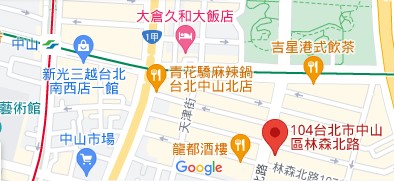 | 住所Adress | 10491台北市中山區林森北路119巷1號 6F(15階建て) |