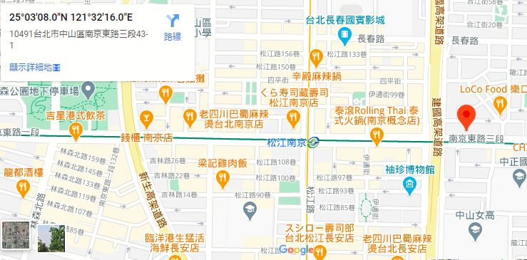| 住所Adress | 台北市中山區南京東路三段89巷9F(10階建て) |