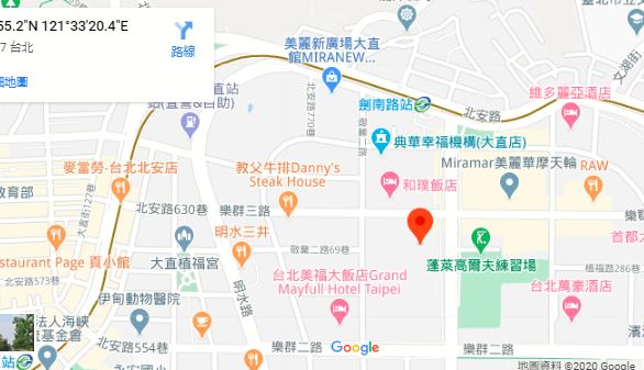 | 住所Adress | 台北市中山區樂群三路65號8F(8階建て) |