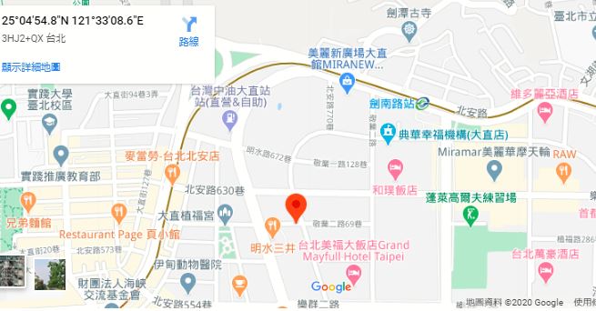 | 住所Adress | 台北市中山區樂群三路8F(8階建て) |