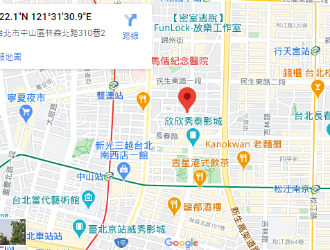 | 住所Adress | 台北市中山區林森北路310巷6F(12階建て) |