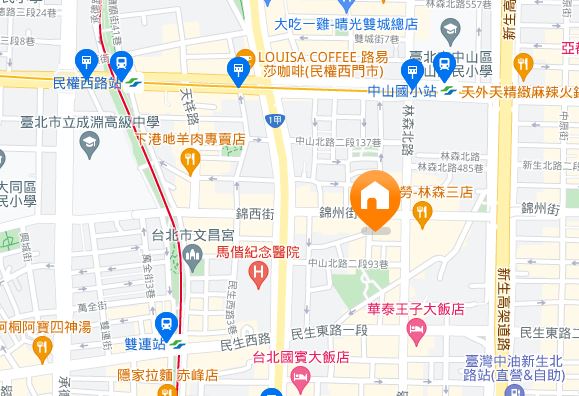 | 住所Adress | 台北市中山區林森北路416巷3F(4階建て) |
