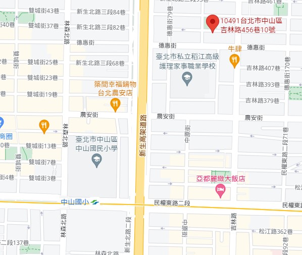 | 住所Adress | 台北市中山區吉林路456巷10號 2F(7階建て) |