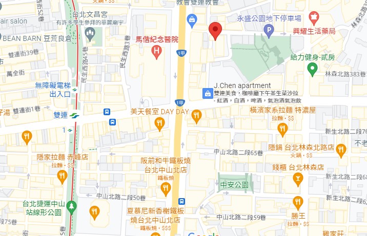 | 住所Adress | 台北市中山北路二段93巷8號11F( 12階建て) |