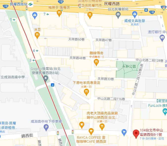 | 住所Adress | 台北市中山區錦西街6F |