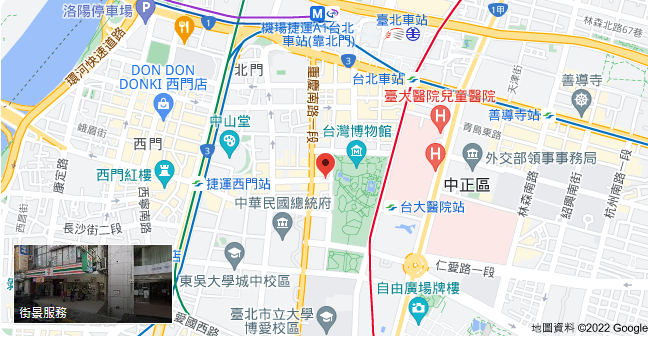 | 住所Adress | 台北市中正區衡陽路6號3F(8階建て) |